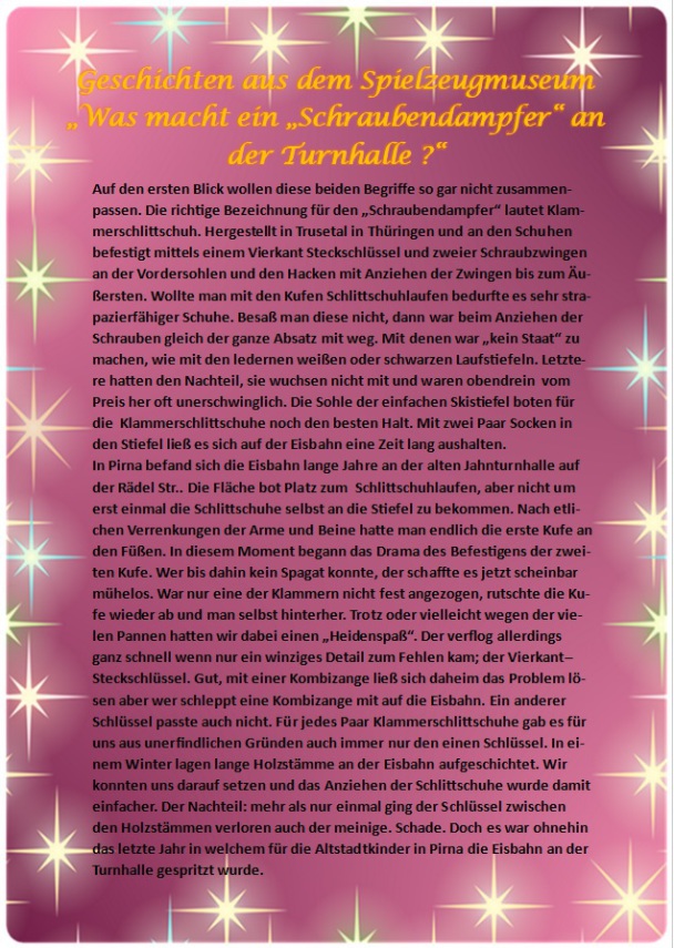 Dann wird es aber Zeit. Hier auf dieser Sonderseite stellen wir Ihnen in unregelmäßigen Abständen kleine Geschichten aus unserem Spielzeugmuseum vor.